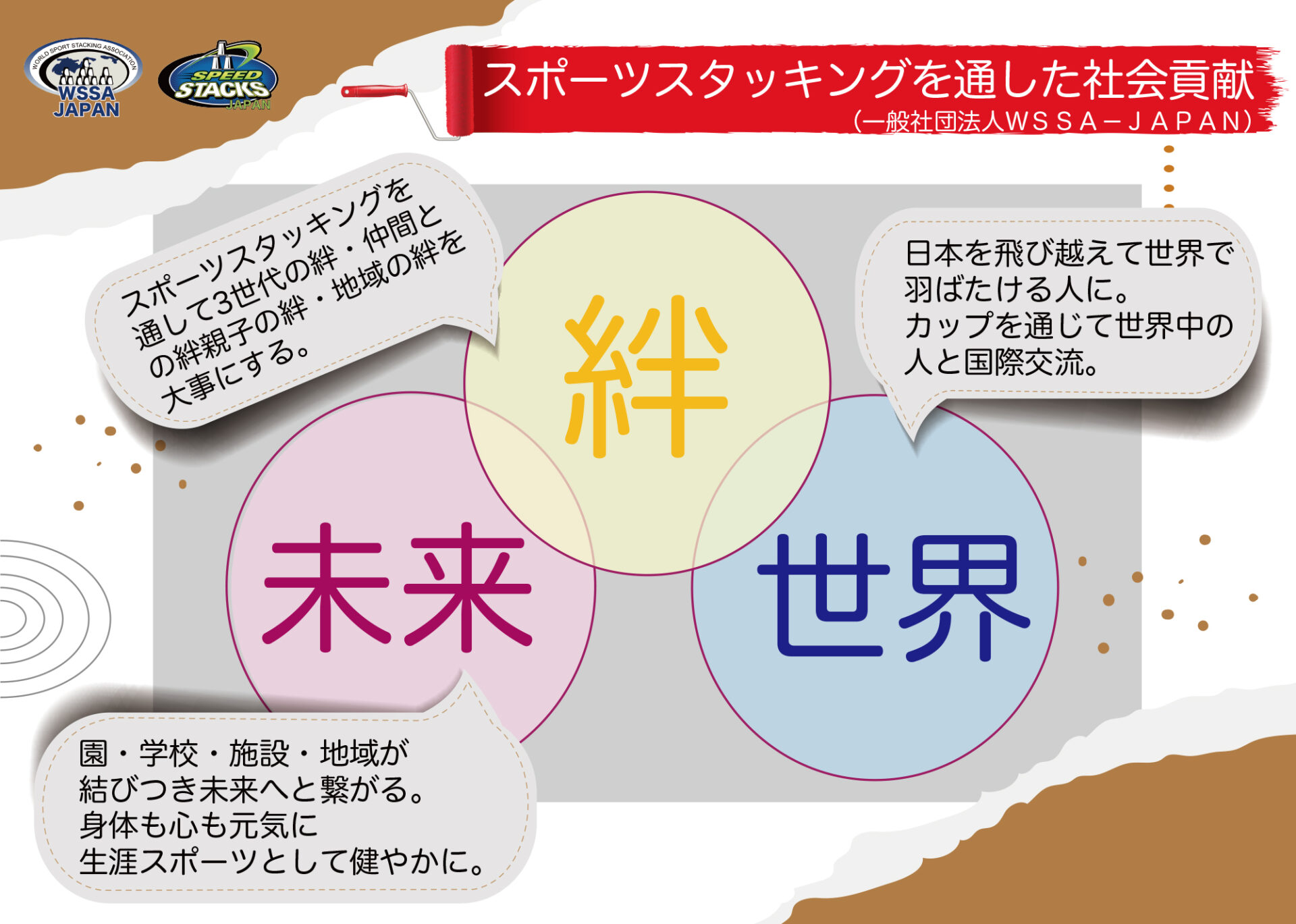 WSSA JAPANでは「スポーツで世の中を元気に!」の理念のもと 「持続可能な開発目標」の達成に貢献し、100年先の子ども達の未来の為に持続可能な社会の実現を目指してまいります。